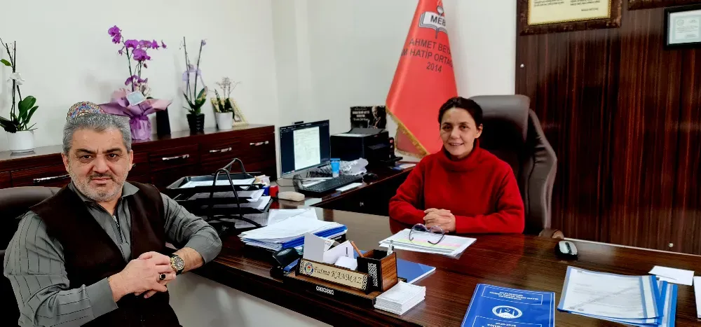 Eğitimden Haberler İmtiyaz Sahibi ve Genel Yayın Yönetmeni Nezir Karayün, okul ziyaretleri kapsamında Beylikdüzü Ahmet Beyaz İmam Hatip Ortaokulu Müdürü Fatma Kanmaz’ı makamında ziyaret etti. Samimi bir ortamda gerçekleşen görüşmede okulun eğitim anlayışı, yürütülen projeler ve öğrencilerin gelişimine yönelik çalışmalar ele alındı.