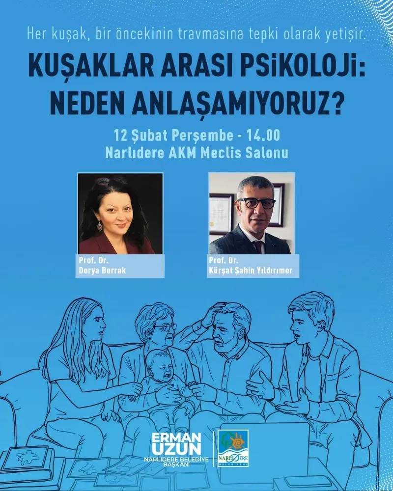 Narlıdere Belediyesi’nin katkıları ve Narlıdere Belediye Başkanı Erman Uzun’un destekleriyle, “Kuşaklar, Psikolojik Kırılganlıklar ve Ebeveynlik Yaklaşımları” başlıklı seminer, Narlıdere’de gerçekleştirilecek.