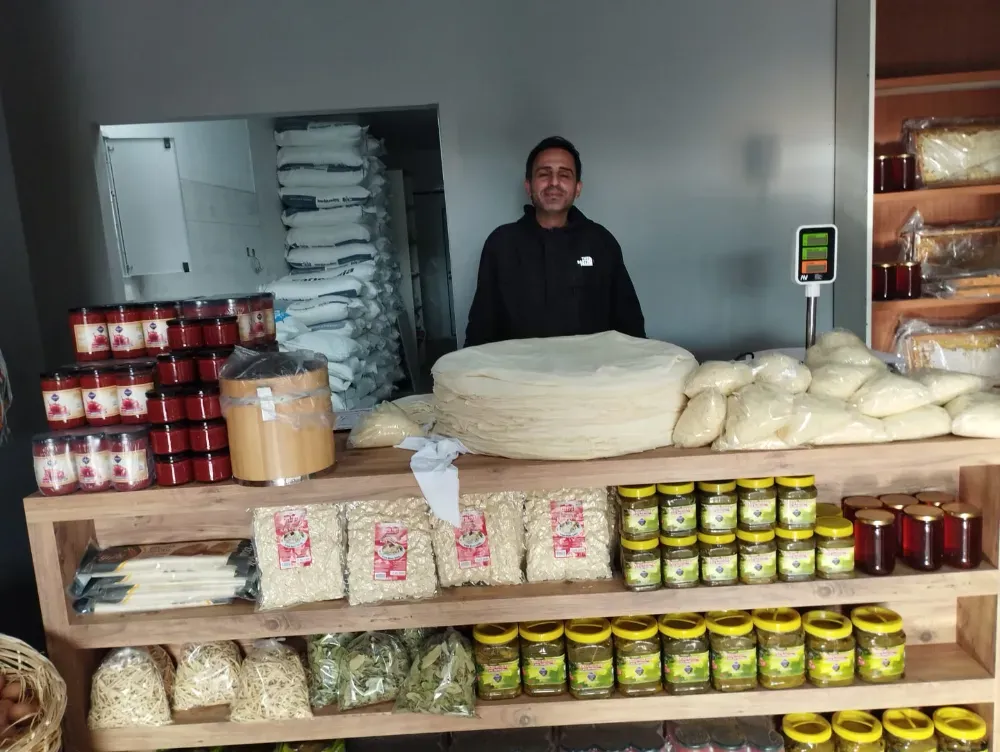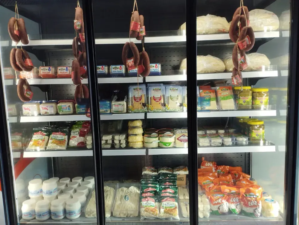Dolaplarda köy tereyağları, peynir çeşitleri, sucuklar, lor ve kaşar ürünleri; raflarda ise tamamen doğal, katkısız lezzetler yer alıyor.
