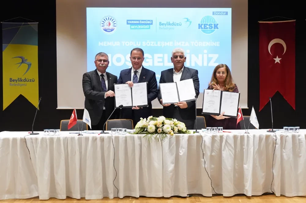 Beylikdüzü Belediyesi ile Tüm Belediye ve Yerel Yönetim Hizmetleri Emekçileri Sendikası (Tüm Bel-Sen) arasında Toplu İş Sözleşmesi imzalandı. Yoğun katılımla gerçekleşen imza töreninde konuşan Beylikdüzü Belediye Başkanı Mehmet Murat Çalık, "Bu anlaşma ile en düşük devlet memuru maaşımızı aylık ortalama 63 bin TL'ye çıkararak asgari ücretin yaklaşık 4 katına yükselttik. Hiçbir yol arkadaşımızı enflasyona ezdirmeyecek, bu memleket için hep birlikte hizmet üretmeye, çalışmaya devam edeceğiz" dedi.