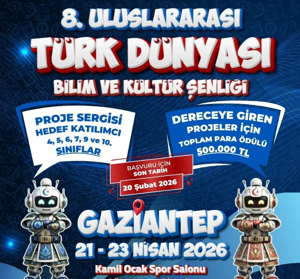 Türk Dünyası Çocuk Vakfı, paydaş kurum ve kuruluşların katkılarıyla bu yıl 21–23 Nisan 2026 tarihleri arasında Gaziantep’te düzenlenecek olan 8. Uluslararası Türk Dünyası Bilim ve Kültür Şenliği için hazırlıklarını sürdürüyor.